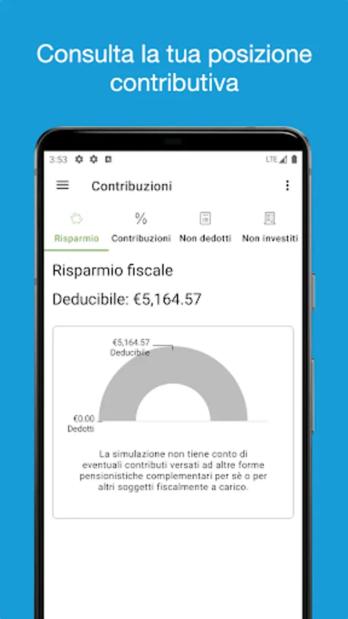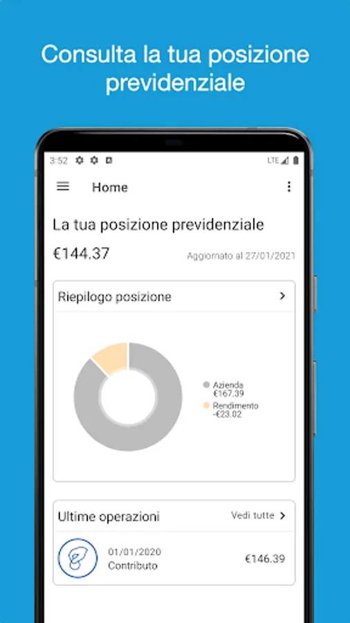 The app allows you to access the reserved area to consult your contribution position and view fund news.