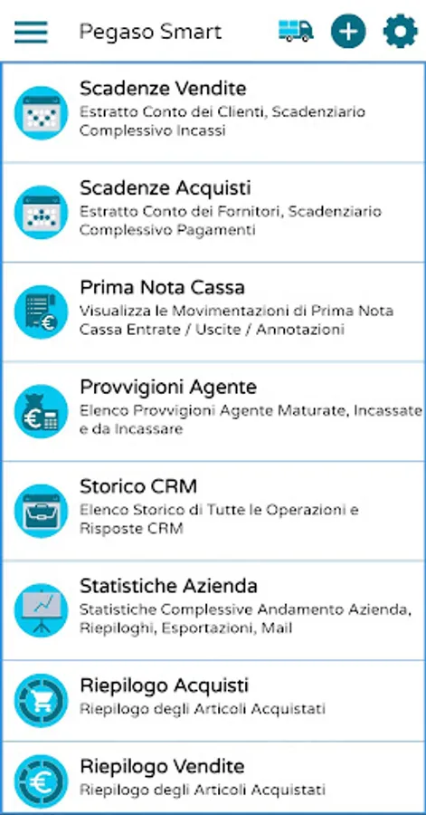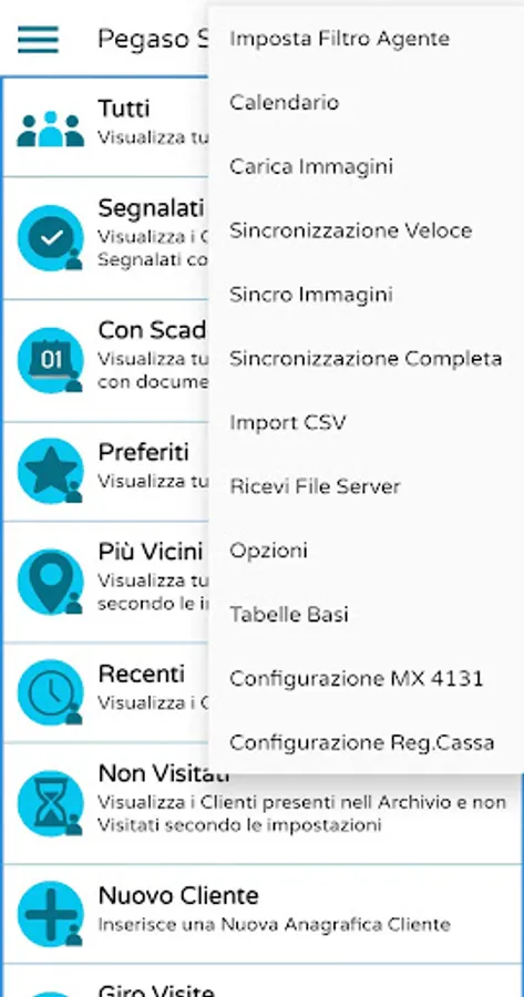 We remind you that for the complete synchronization of data on the Windows management system we recommend the use of Pegaso Gest which will also allow the modification of basic tables. The Android Terminal works offline to synchronize at will with the Windows platform.