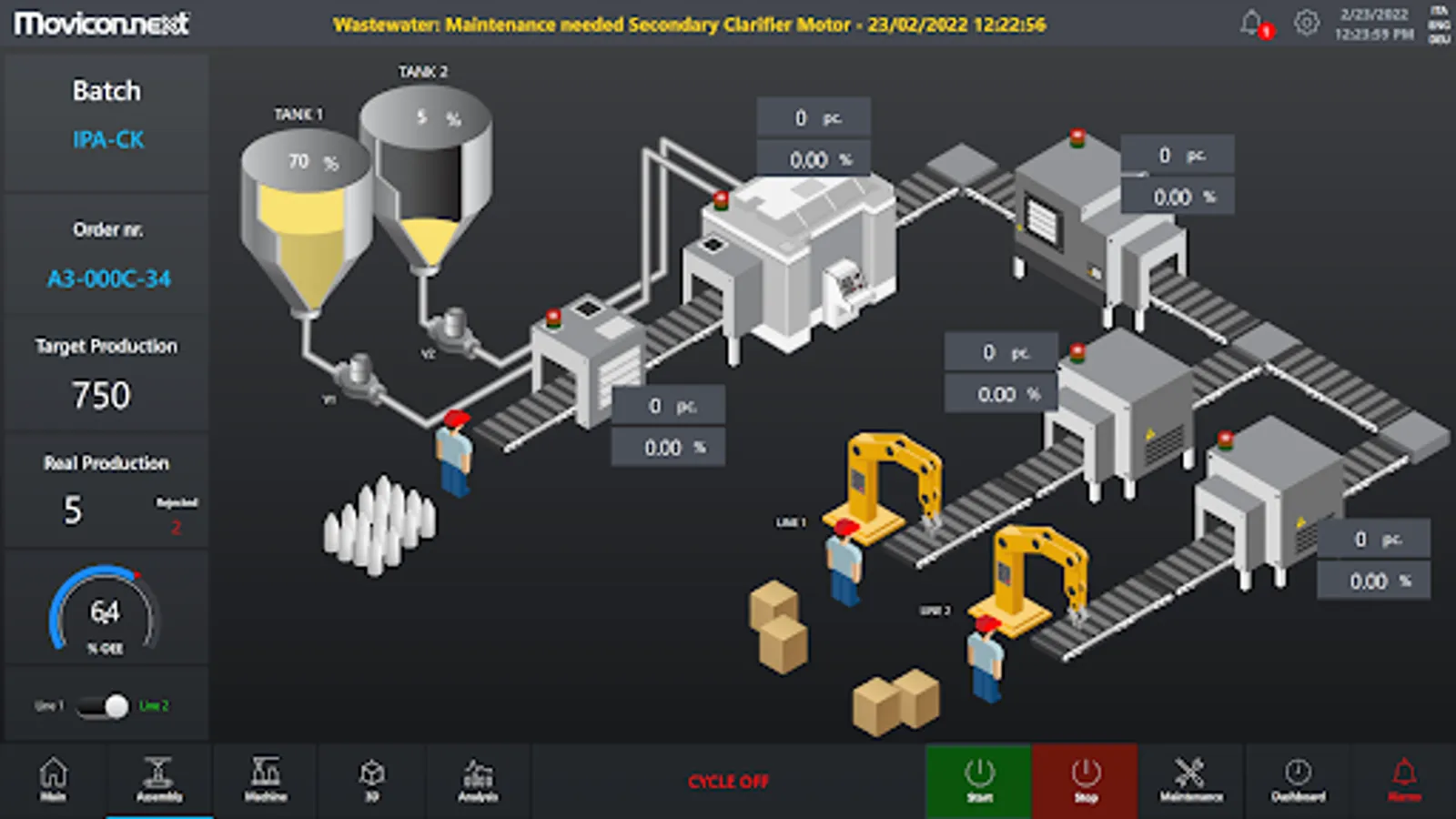 Movicon.NExt is the new generation of supervision software that connects and visualize your plants or machineries using an intuitive user interface. It manages alarms, historicals and any data information for reports and data analysis, according the modern Industry 4.0 requirements.