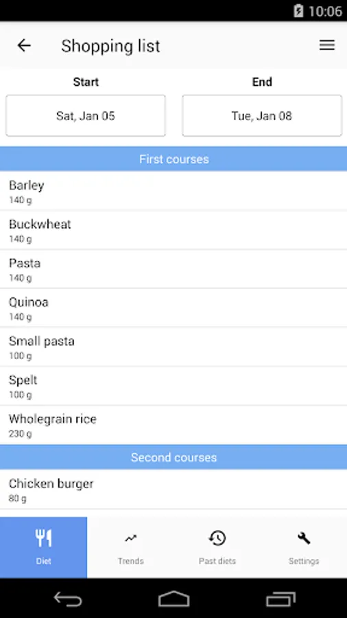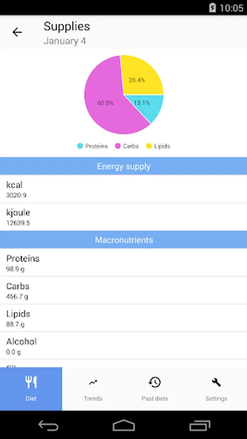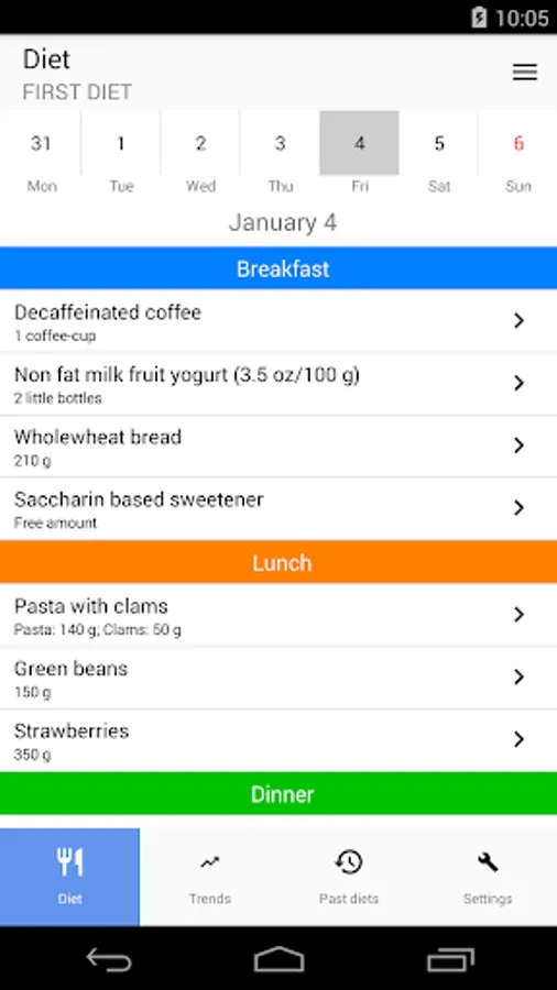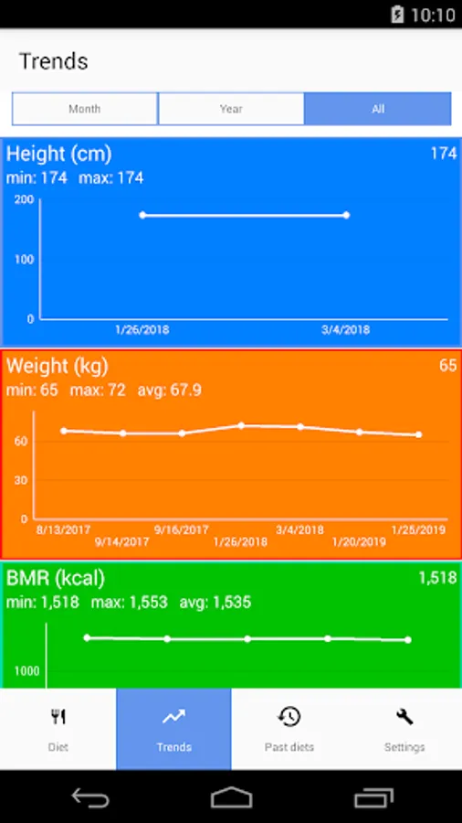 The diets received will be available in the app until one year after the end date set by your nutritionist. You can view trends since two years ago.