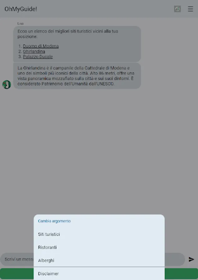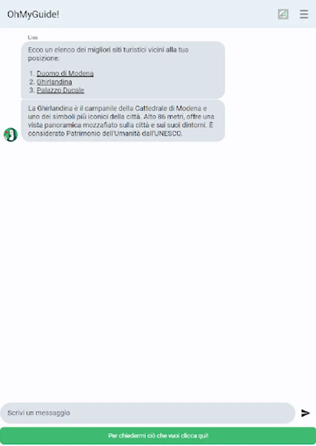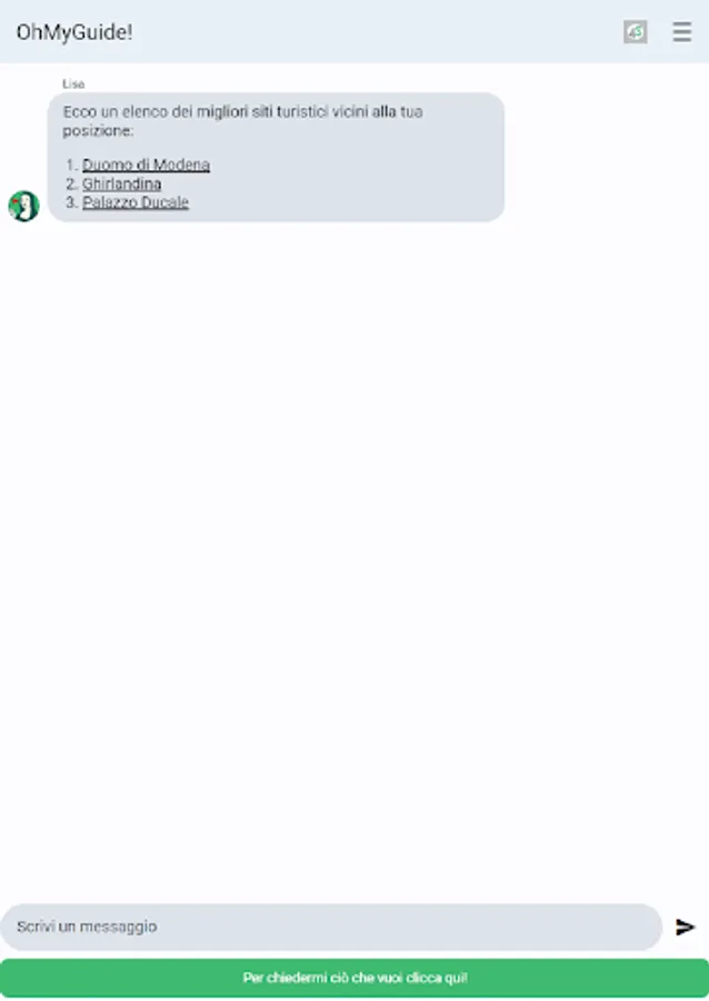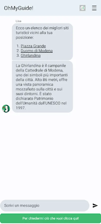 Whether you are visiting a new city or want to explore your place of residence, OhMyGuide! is the virtual assistant that will make you live an unforgettable experience.