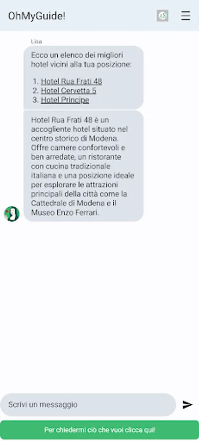Lisa, your personal travel chatbot, is ready to guide you through an unparalleled travel experience. With her comprehensive knowledge of cultural venues, hotels and restaurants, Lisa will give you directions based on your geographic location and help you plan your itinerary.