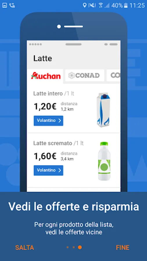 MILK click on and you will see a list of all the offerings of milk in supermarkets near you! You also have the opportunity to decide what are the usual shops where are you going to do the weekly shopping: you'll see the offers of those store out!