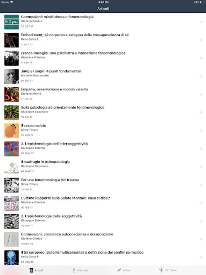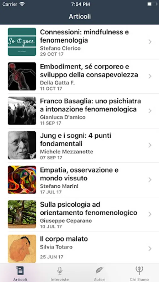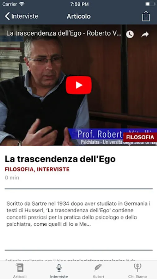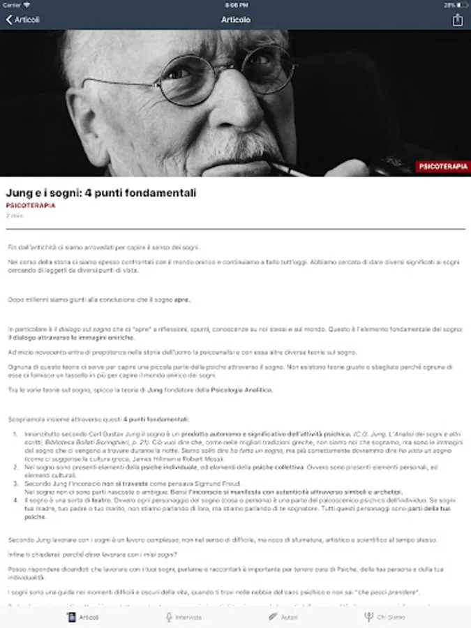 On our app you can find content on psychology, psychiatry, psychotherapy, neuroscience and philosophy, while staying up to date on the events organized in Italy and abroad in these areas.