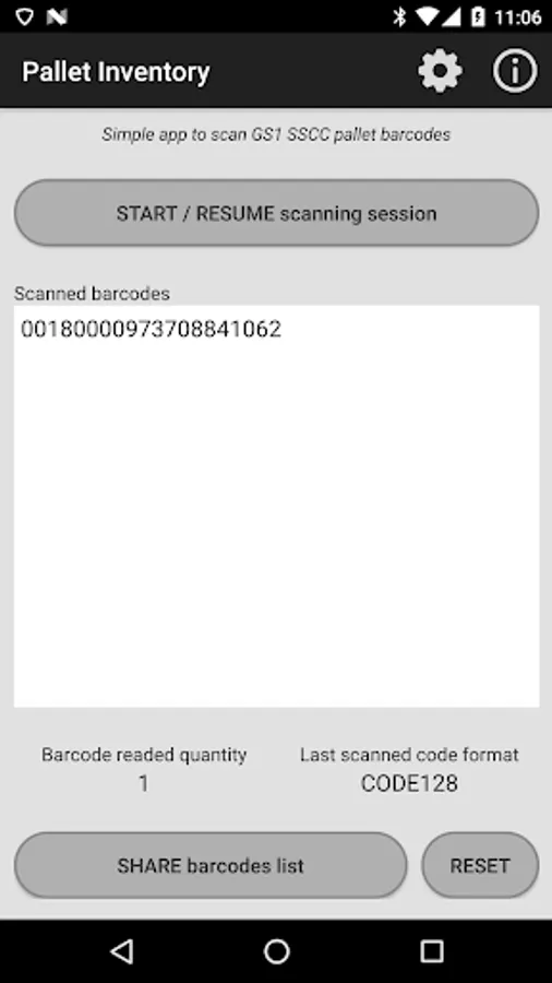PALLET INVENTORY is a simple app to inventory pallet with GS1 SSCC barcode.