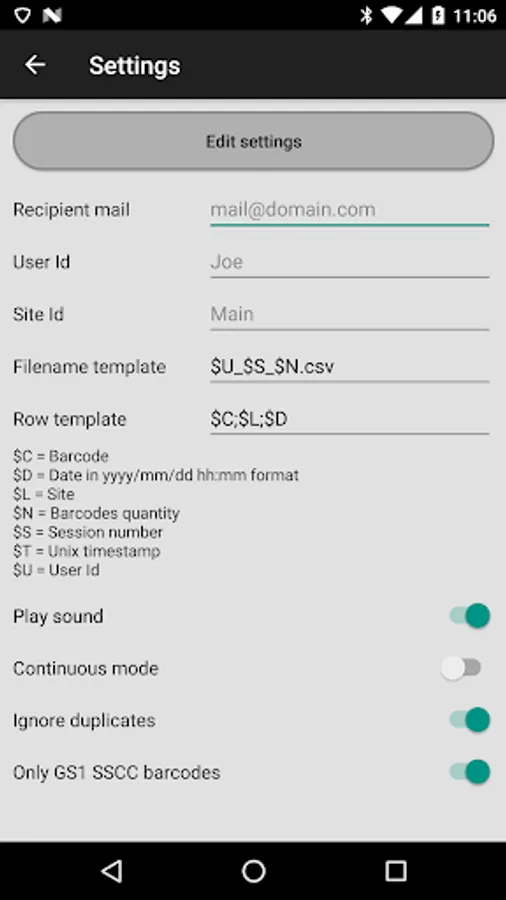 By scanning barcodes in the correct format only, the app quickly capture all pallets in the warehouse and share the result via a CSV file attached to an email.