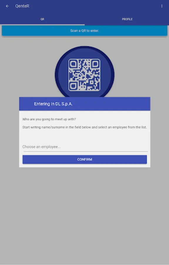 Upon arrival at a company that uses the QenteR® system, visitors who have downloaded the App and registered may access by scanning a QR code.