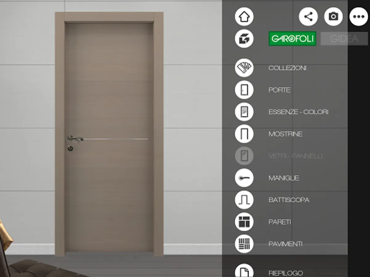 MyGarofoli Door is easy to use app that allows anyone to view the furnishings interior of a compound of doors atmosphere, walls and floor.