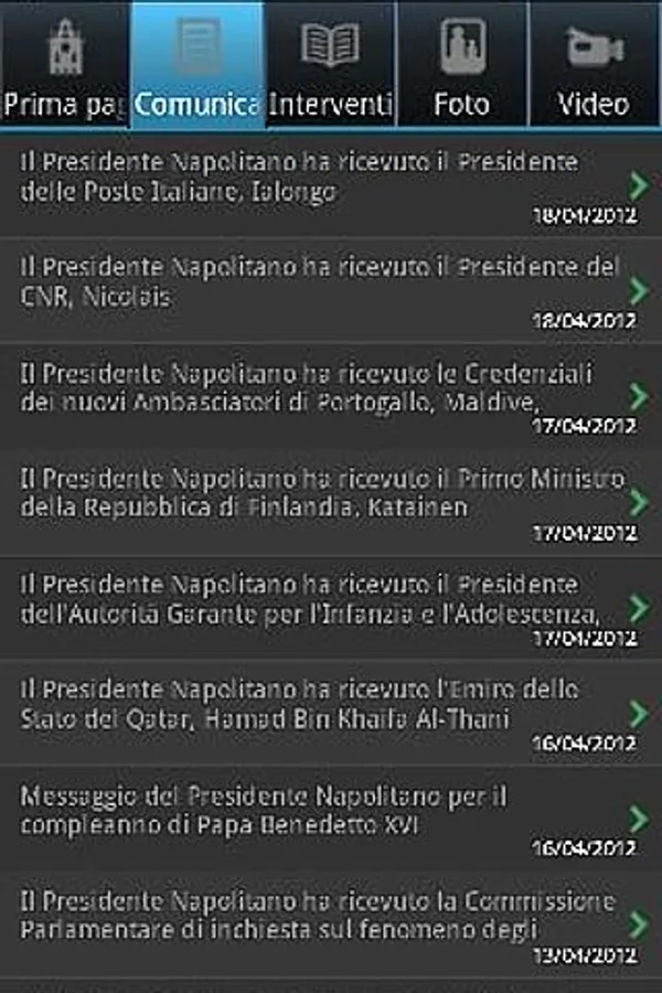 The official application of the Quirinal with the latest news on the activities of the President of the Republic allows you to browse all the speeches and interviews the Head of State and announced by the Presidency.