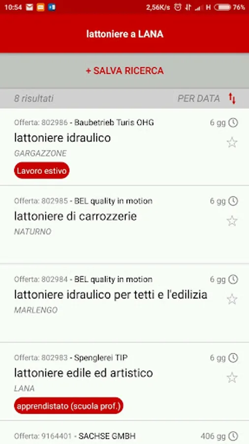 eJobLavoro, electronic borsalavoro South Tyrol is a useful tool to facilitate the meeting between those seeking and those offering work. A person looking for work can easily find vacancies. The vacancies are published both by companies and businesses by employment mediation centers (employment services) on behalf of companies. In addition to private sector jobs they are also published notices of competitions for the civil service as well as the internship offers, summer jobs and apprenticeships. In the search for a job or for those interested in internships, summer jobs, or wants to become an apprentice it is also helpful the work mediation center (labor office) closer.