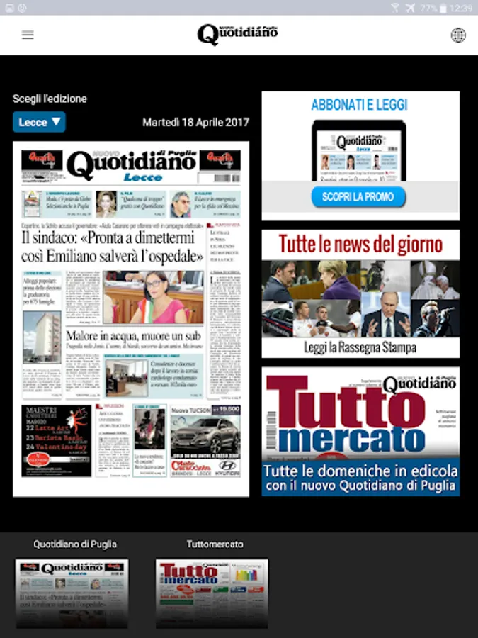 - try it and read every month from your app up to 10 items of the New Daily Newspaper from Puglia and you can choose to buy the contents with one of the exclusive promotions!