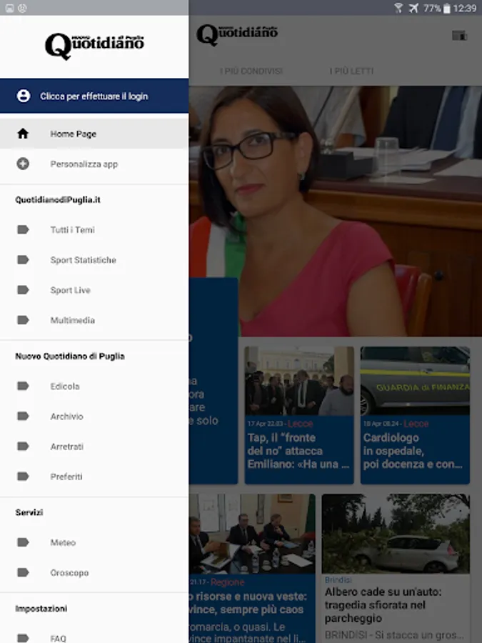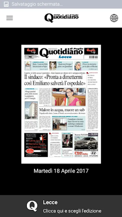 You will be able to access the news of the newspaper under the heading "Nuovo Quotidiano di Puglia" - "Newsstand". The editions of Lecce, Brindisi and Taranto, available from the early hours of the morning not only online but also offline once downloaded. You will be able to access and consult the attachments and the newspaper's specials, browse the editions of the last 14 days and save them on your devices.