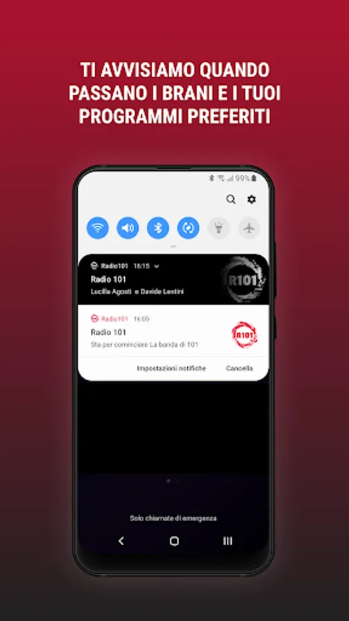 Listen to these popular programs whenever you want to: "La Carica di 101 and "Molto Personale" with Marco Balestri.