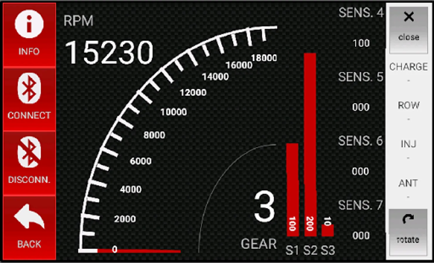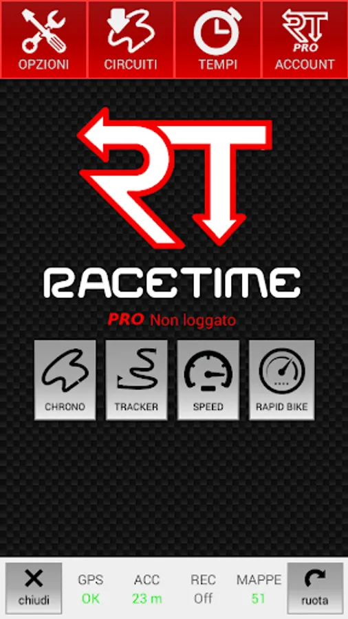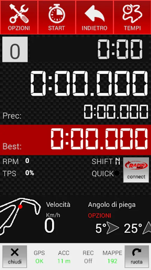 During the lap, Racetime display on the screen the most useful information for the rider, visible at a glance: position on the track, speed, the fastest time of the run, the time of the last lap and the previous lap.