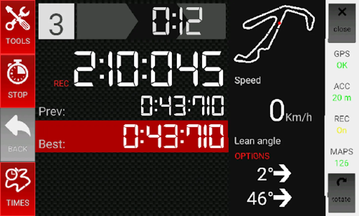 This app allows you to use the GPS technology found on modern smartphones, using them as a lap timer. A big saving if you consider that an average cell phone with built-in GPS has a lower price than a GPS stopwatch!