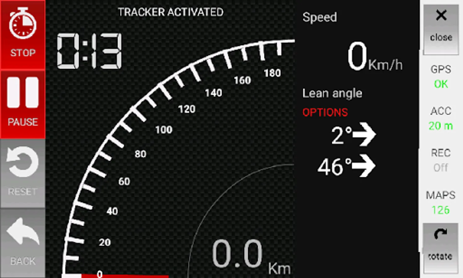 RaceTime can record speed, trajectory, lean angle and G-Force.