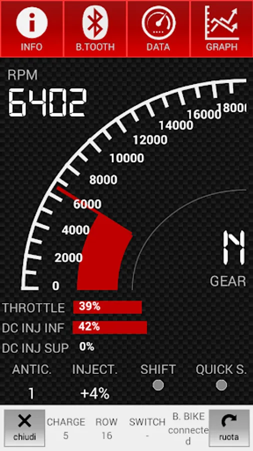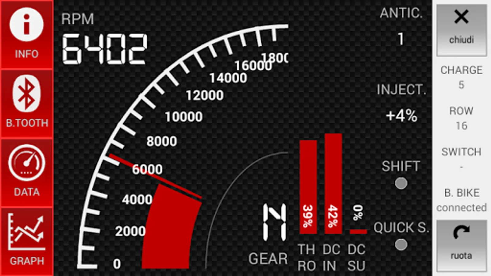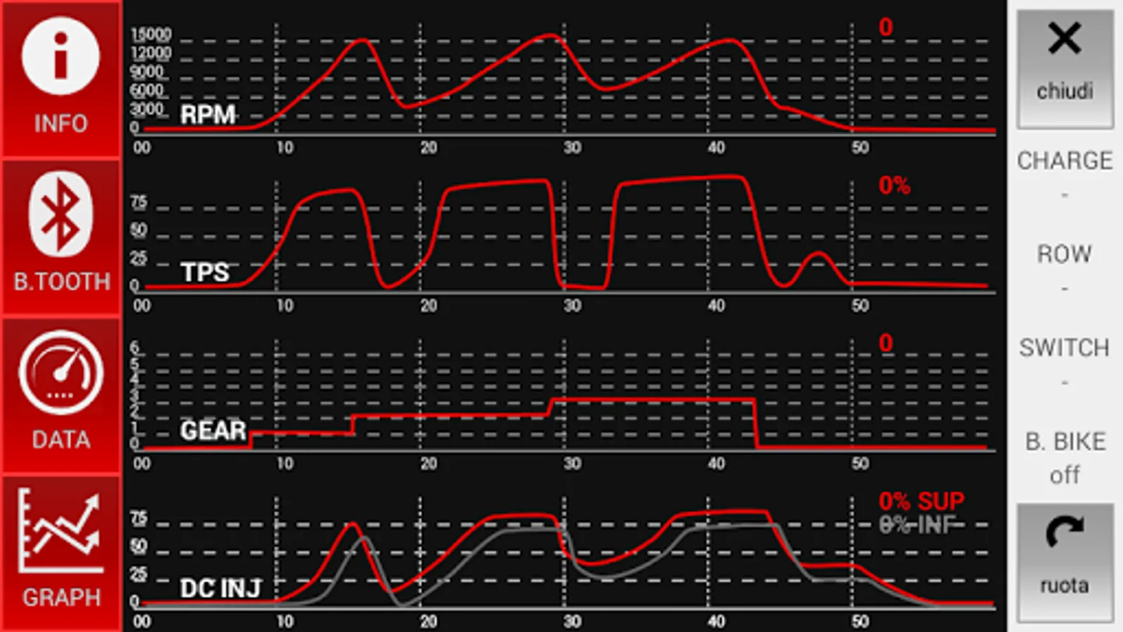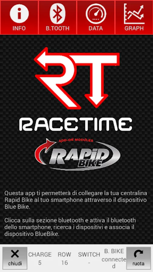 The app allows you to connect directly to your ECU through the Rapid Bike Blue Bike device.
