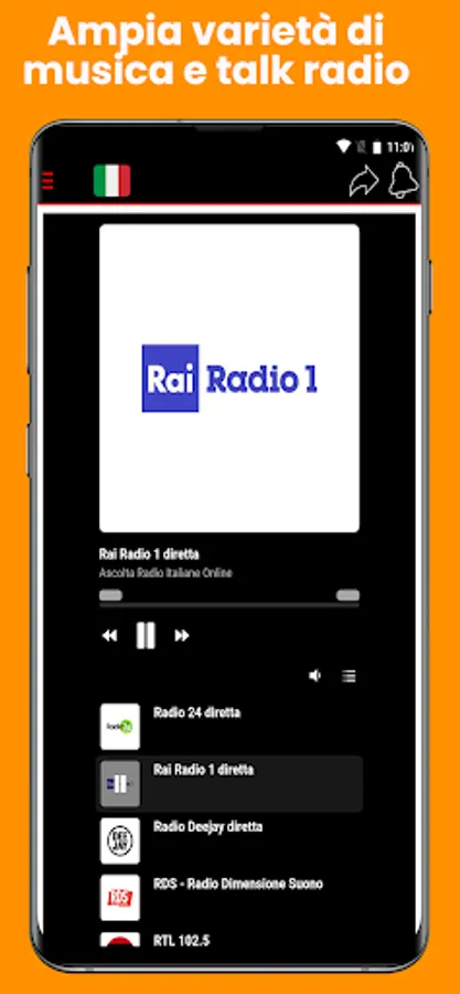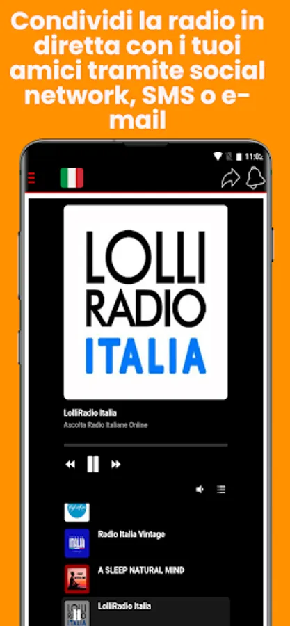 🎵The ergonomics of Radio Italiane have been designed to be the simplest and fastest radio application, giving you a pleasant and easy listening experience 😊