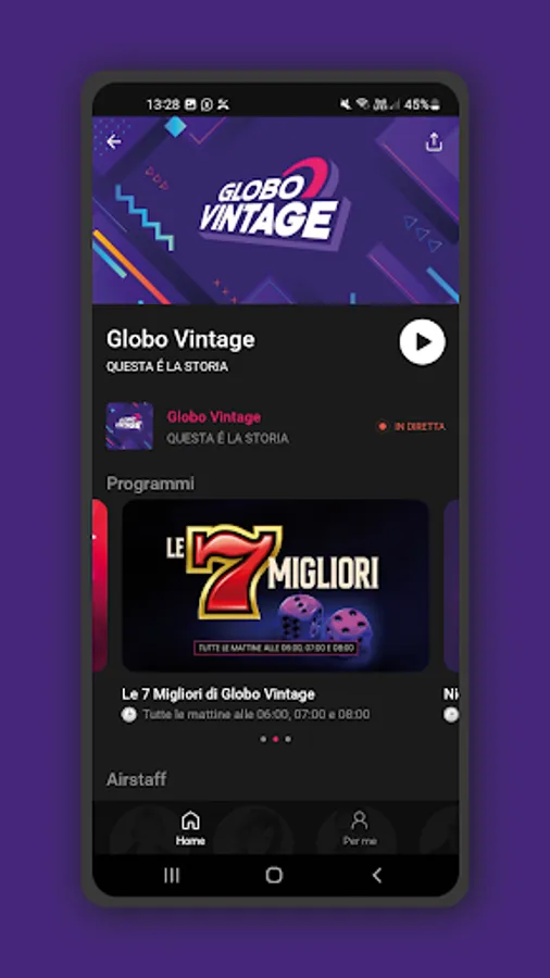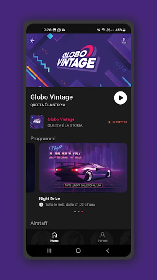 With our app you can listen live to Globo Vintage and Radio Globo. Take the 70-80-90 music of Globo Vintage and the contemporary hits of Radio Globo with you everywhere. Thanks to push notifications, you will always be updated on all the initiatives of Globo Vintage and Radio Globo. The application is compatible with Android Auto.