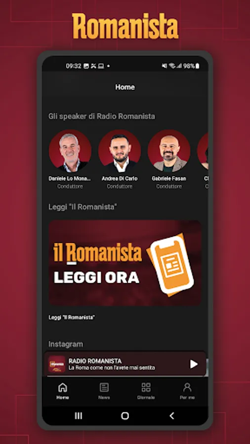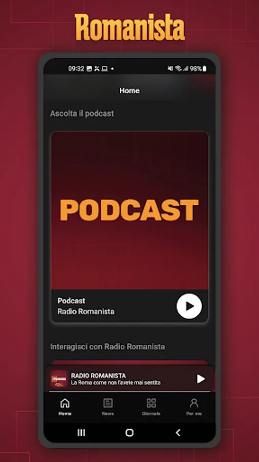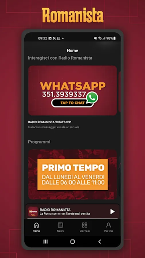 On the Romanista App you can listen to all Radio Romanista broadcasts live wherever you are and get in touch with the speakers while they are live.