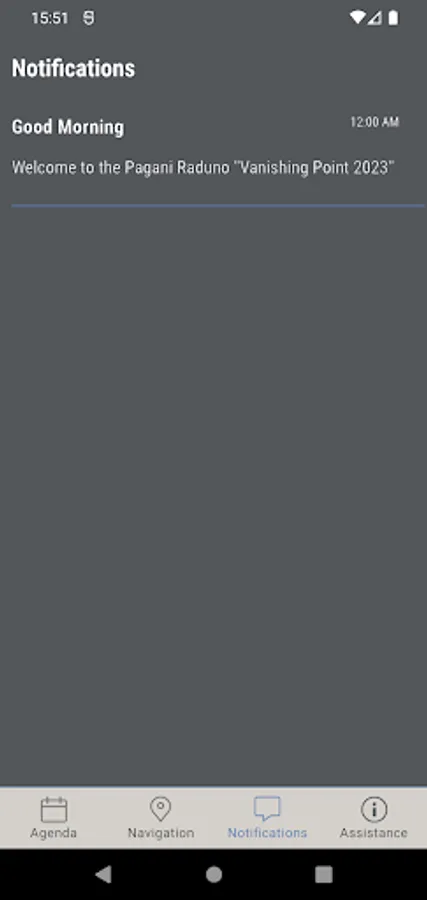 In this app you will find the official itinerary for “Vanishing Point 2023”. You will find the daily agenda and navigation at your fingertip. The Pagani team will send you live notifications and is at your side for assistance at all times!