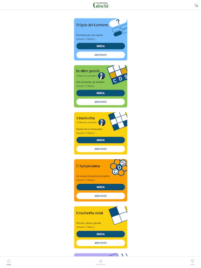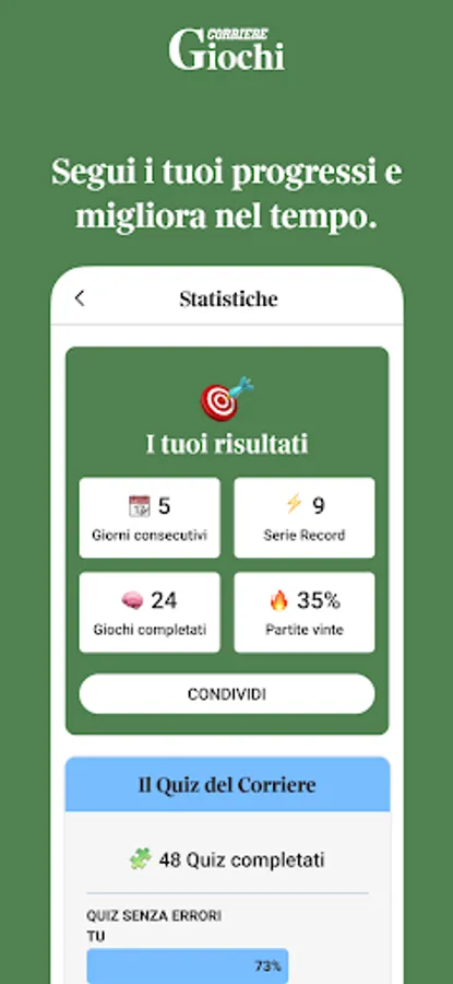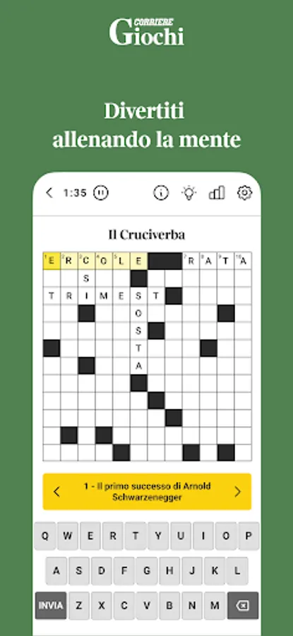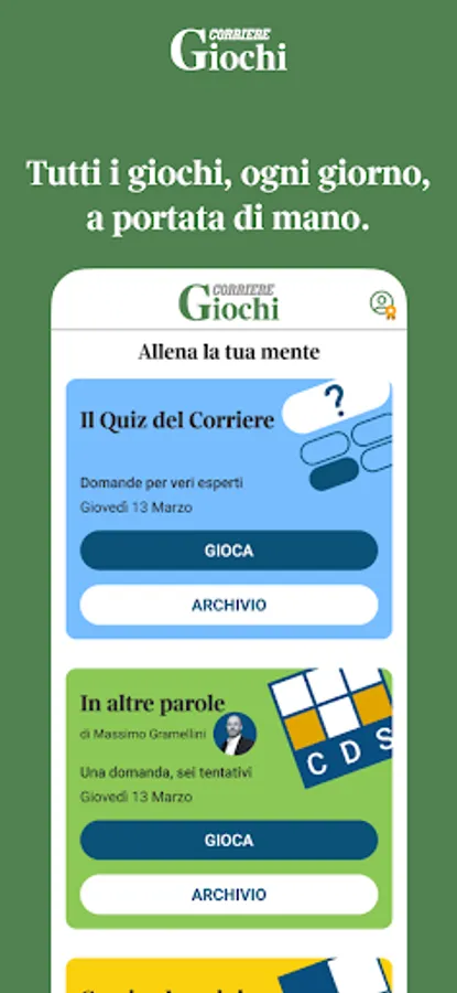 Daily challenges and brain teasers designed to train your mind while having fun: quizzes on current affairs, crosswords, Sudoku, and all the other word games combined with Corriere's editorial expertise and in-depth journalism.