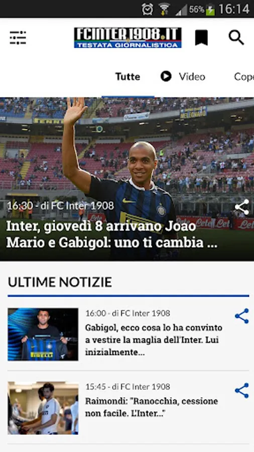 Browse the categories to find all the information that the FcInter1908 editorial team has selected for you, enjoy the videos about the Inter world and football in general and browse the photogallery of your favorites.