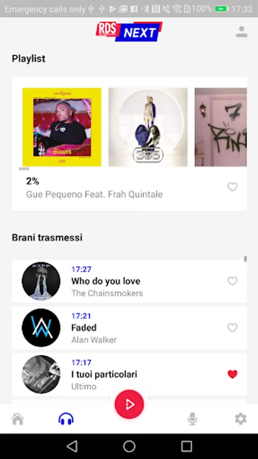 The RDS Next app tells you at any time which song is on the air: mark your favorite songs with a heart and read the lyrics as you listen. And if you have lost the title of a song, you will always find it among those just broadcast.
