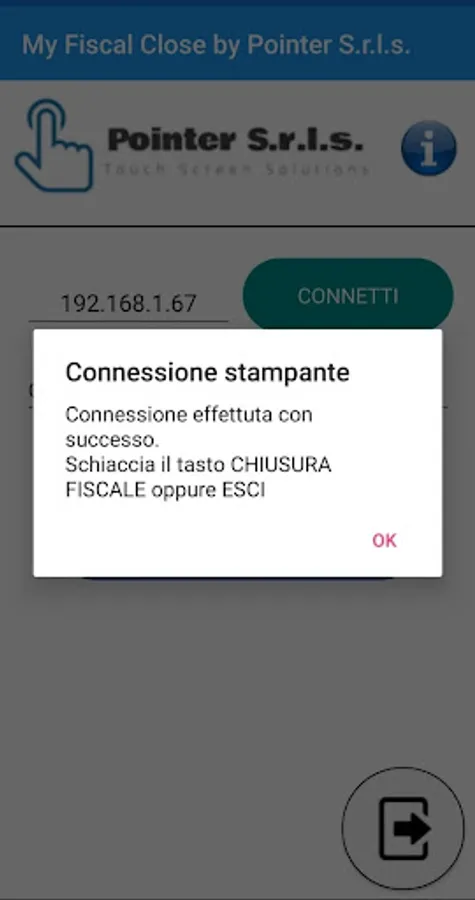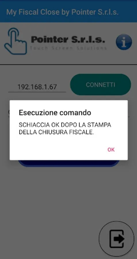 MyFiscalClose is an application developed by the Pointer S.r.l.s. which allows you, by simply entering the IP address of the cash register, to carry out a fiscal closure as per the manual. The fiscal closure that will come out in fact will have nothing different than the one that will come out following the manual procedure. By clicking on our logo (inside the application) our web page will open, while selecting the info button you can write us an email directly. All your feedback will be important so do not hesitate to contact us to ask for more information or provide us with useful ideas.