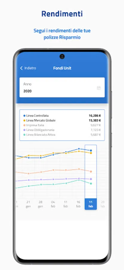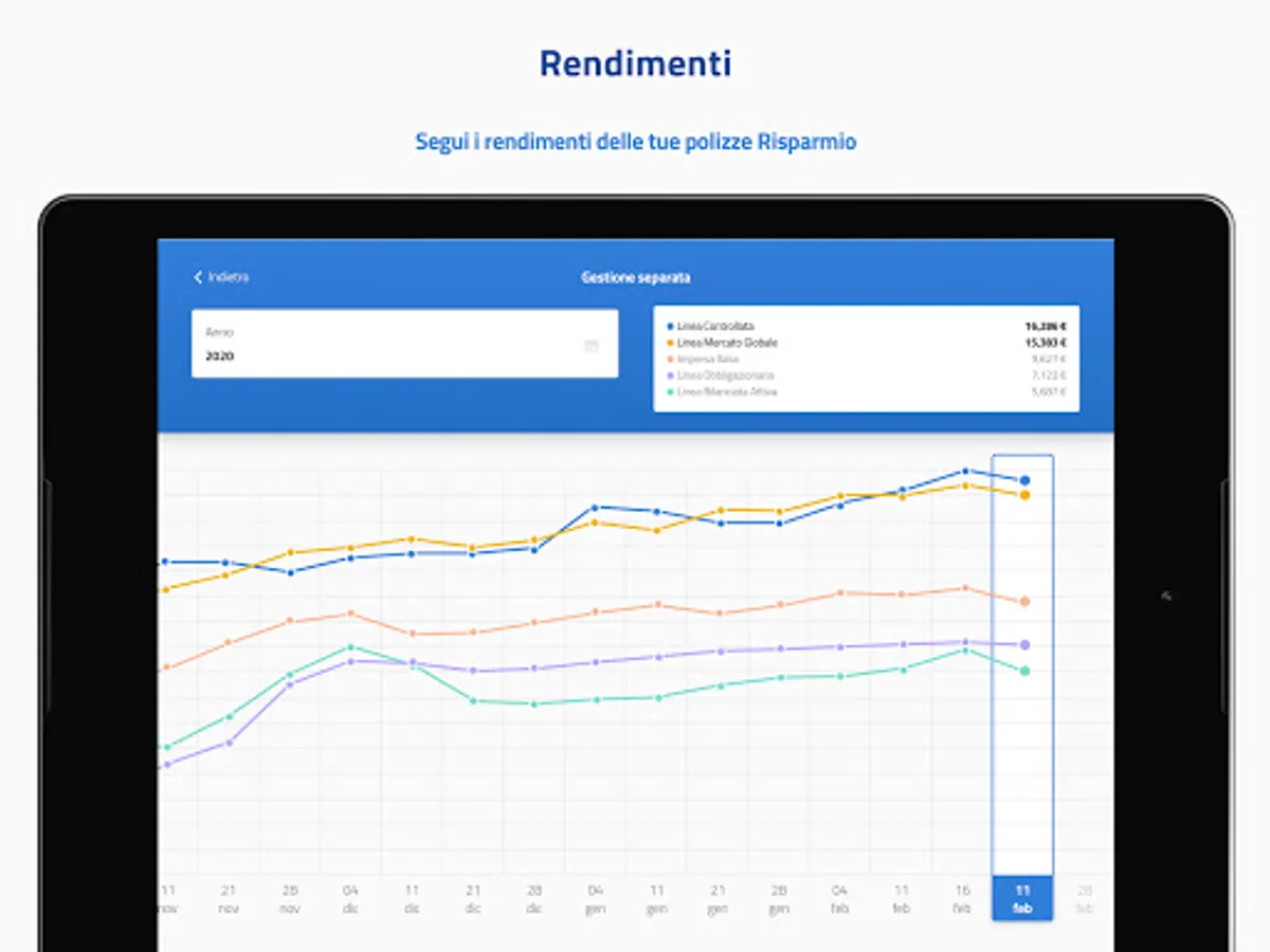 • Consult and manage your insurance position on the go, viewing the various guarantees that make up the product, the premium, the values and graphs of your Life policies. You can also carry out operations, such as the suspension/reactivation or renewal of your policies, directly from the App!