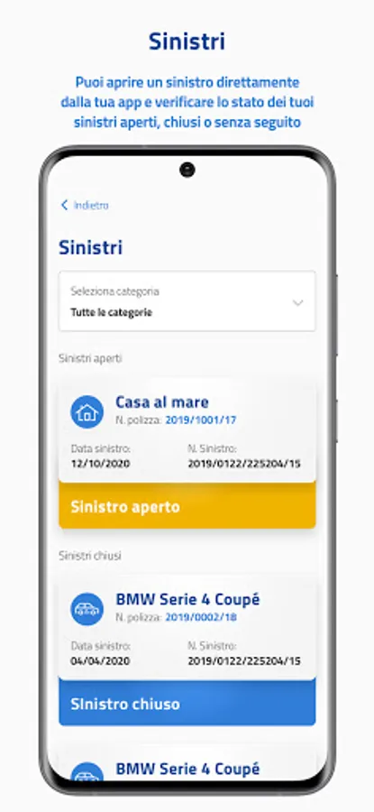 • Quickly find the contacts of the Reale Mutua Agencies, of the approved body shops and of the health facilities closest to you