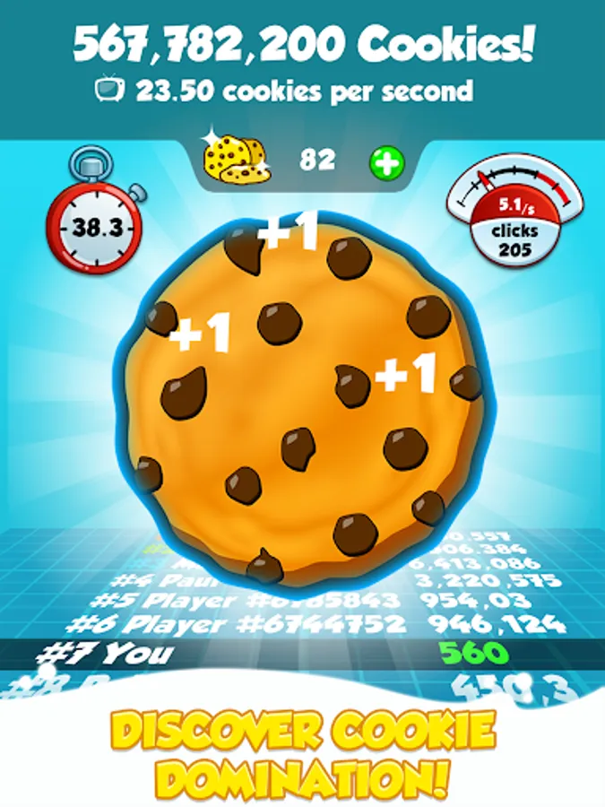 - Bake as many cookies as you can by tapping on a giant cookie. The faster you tap, the more you bake!