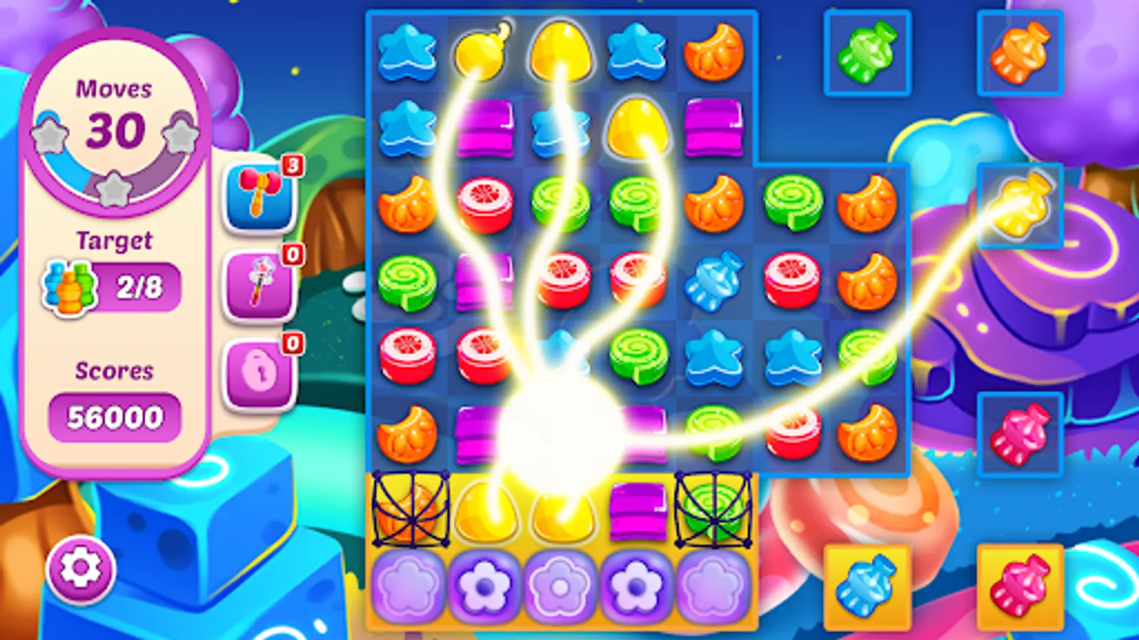 ๐ฌ Strategically combine and crush gummies to make magical candy combos (Jelly Beeans, Bonbons, and Striped Candy just to name a few)!