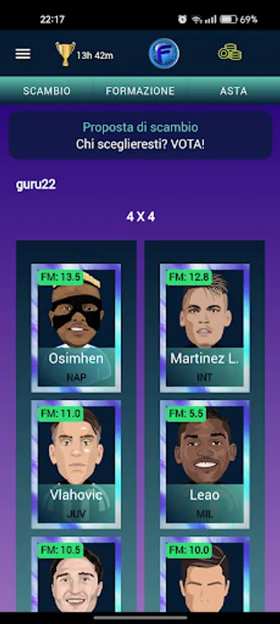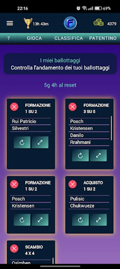 Game modes Ranking: every week you are presented with some ballots of the formation of the other fantasy coaches, show your skill in solving them and climb the rankings!