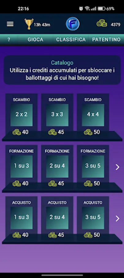 Catalogue: Unlock the ballot types you need using the accumulated credits.