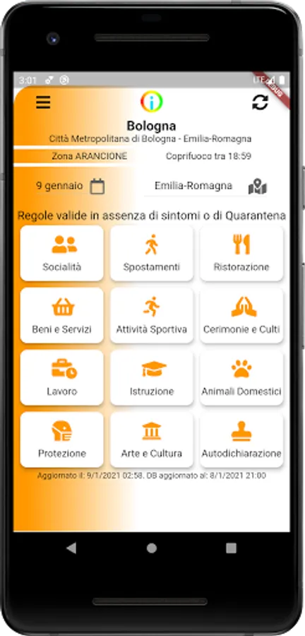 The contents of the App are offered for information only and without any guarantee. The certainty of this information, as always, can only be obtained by reading and understanding the DPCM and the Ordinances published in the Official Gazette of the Italian Republic and on all the publication channels of the competent Territorial Bodies for your area of belonging.