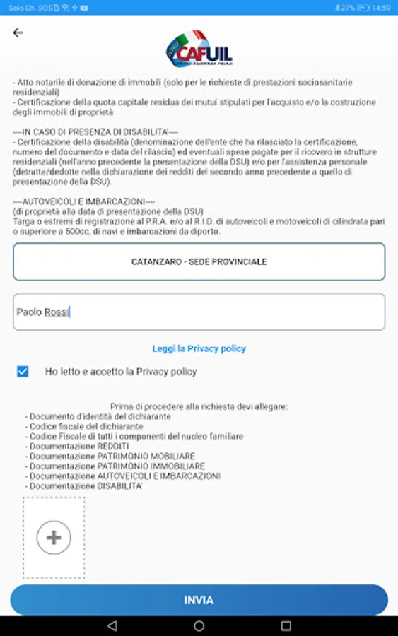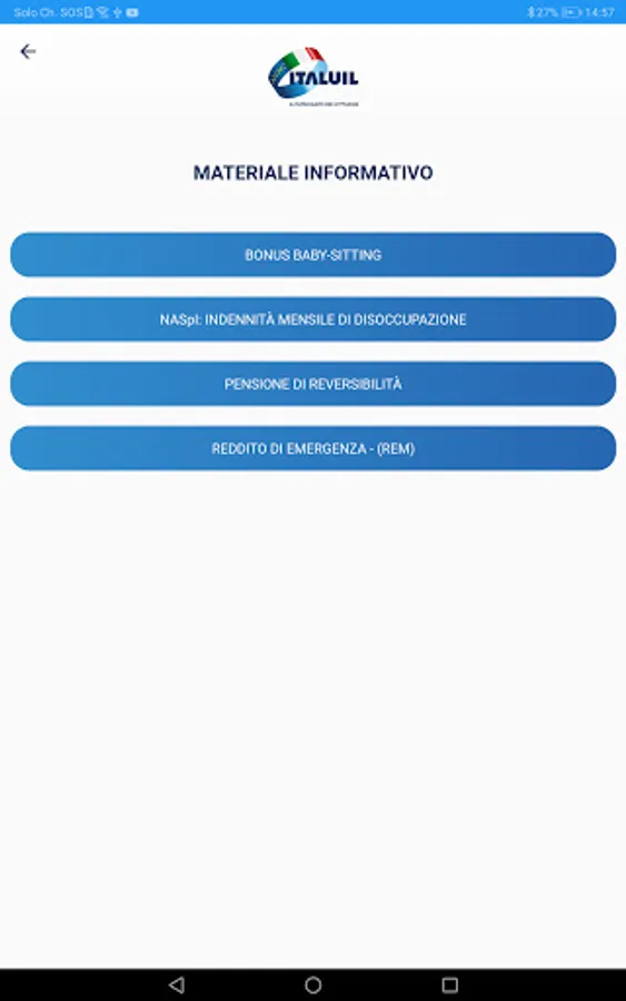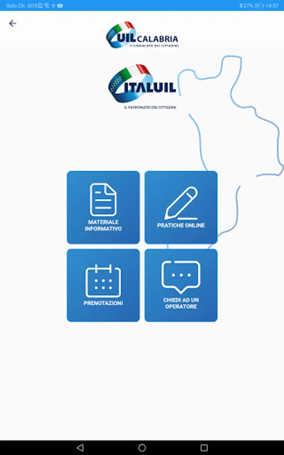 Information material. The app allows you to update yourself and keep up with the latest news on the world of work and on the activities carried out in the Calabrian area by the Italian Union of Workers. Furthermore, it is possible to access useful information on the union, on the offices in Calabria and on the documents necessary to complete the paperwork concerning the employment, tax and social security relationship.