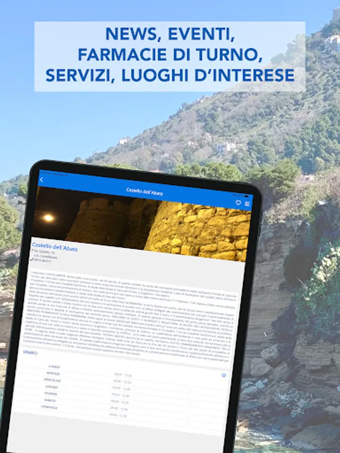 Download the official app of the municipality of Castellabate on your smartphone for free and consult the services offered by the activities and the updated useful info, see the scheduled events, receive important notices and much more.