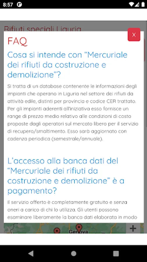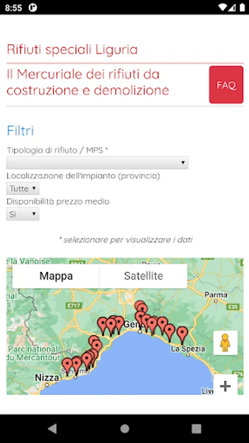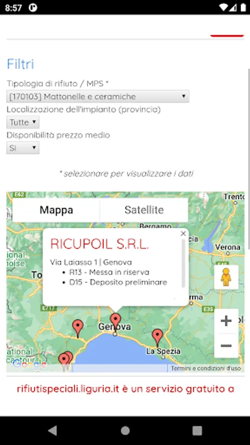 The "Mercurial of construction and demolition waste" is a public database that intends to map the plants, located in Liguria, for the treatment of certain types of waste.