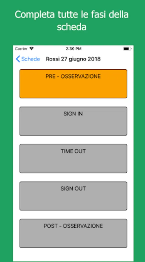 Years after the implementation of the SSCL in Emilia Romagna, it is appropriate to verify the effective adherence of the surgical teams to the correct application of the checklist in the operating room. The method identified for this purpose is that of direct observation thanks to data collection through the ObsERvare app. The information collected by this app flows into the regional database which allows active surveillance and immediate information feedback on the results.