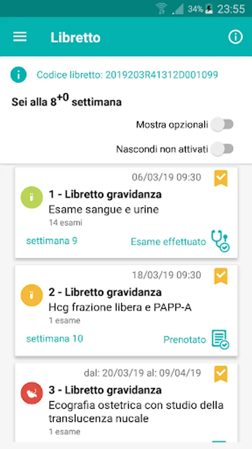 Allows you to book the visits and exams provided in the booklet on the new regional CUP 2.0 booking system directly from the app.