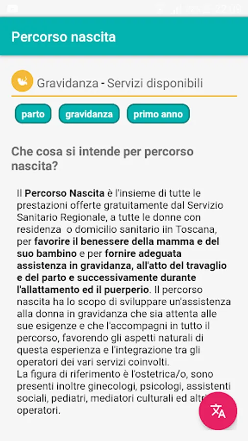It provides indications on the consultancy and hospital services related to the birth path to orient the woman, even with a georeferencing system.