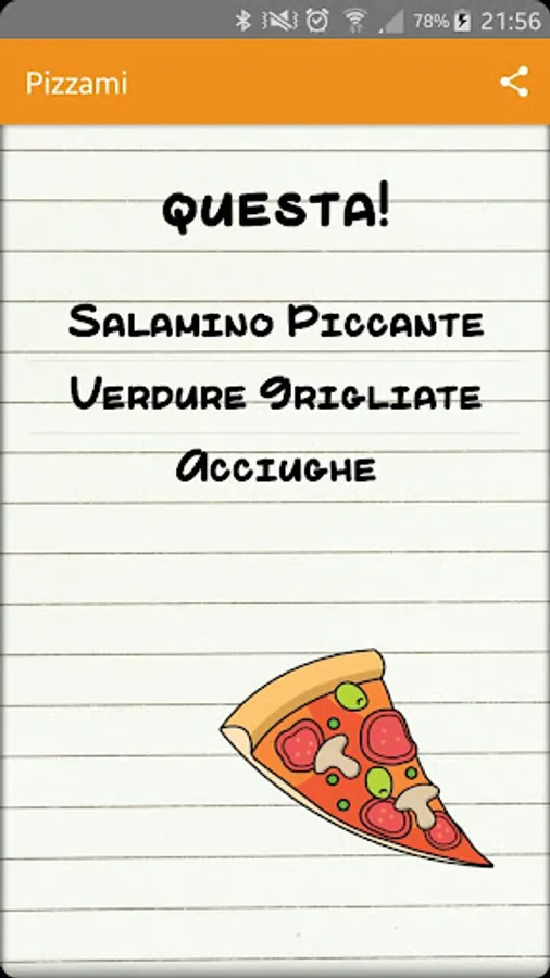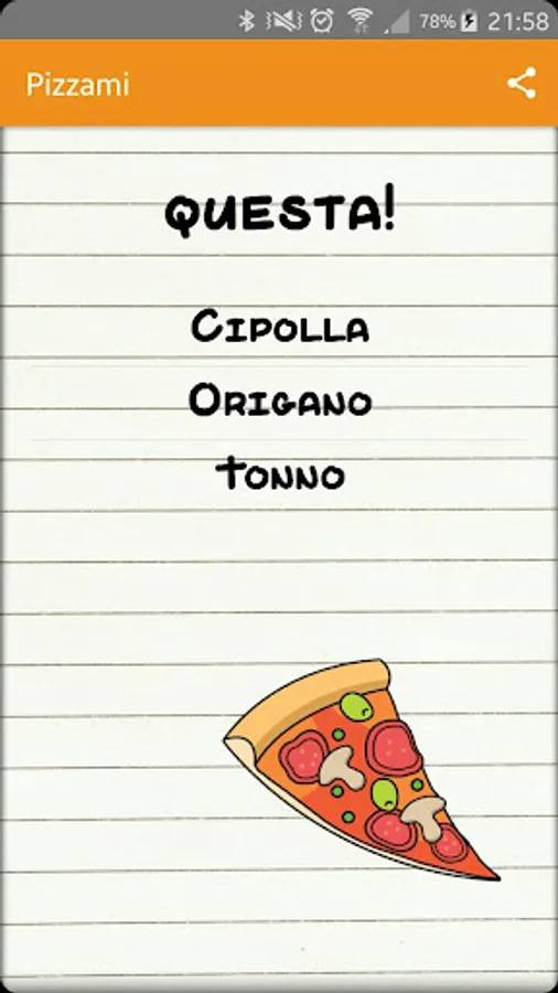 Shake the phone and find the right inspiration to satisfy your craving for pizza.