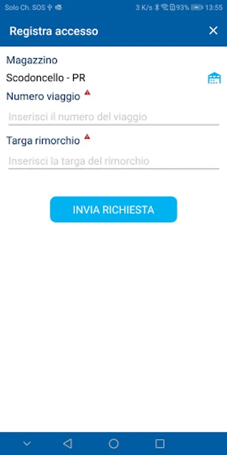 Once logged in, it will be necessary to indicate the travel number on the bill and the license plate of the trailer in order to automatically enable access to the warehouse.