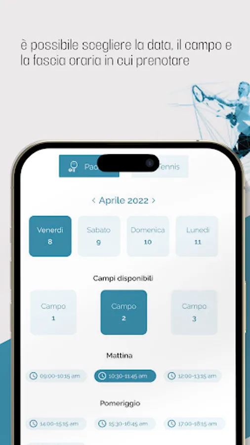 Playground booking app, you can choose the date, field and time slot in which to book.