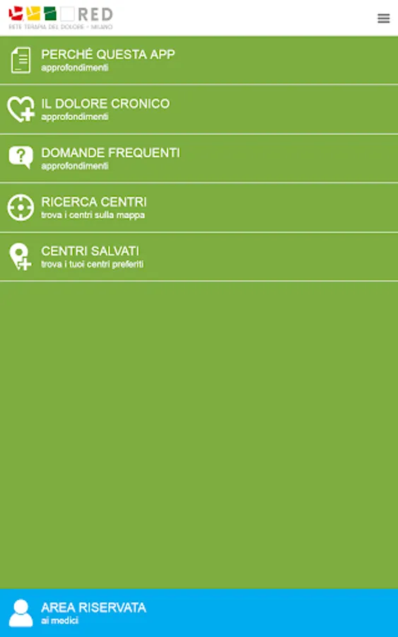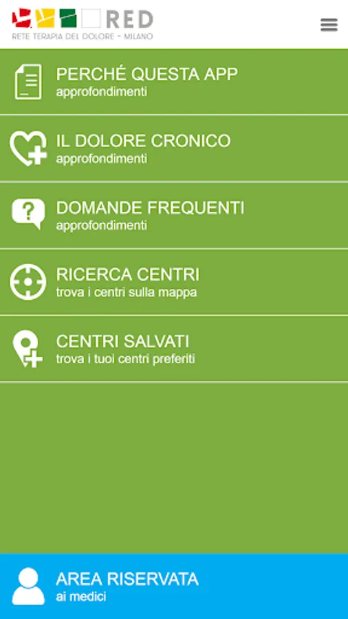 This App is a technical and practical tool that helps inform, to guide, to create synergies, to extend a network, it also helps the patient to seek the nearest health center, helps the general practitioner and other specialists to make direct access to the patient with complex pain at the Center for pain therapy nearest appropriate, contacting and booking directly a visit with the specialist reference.