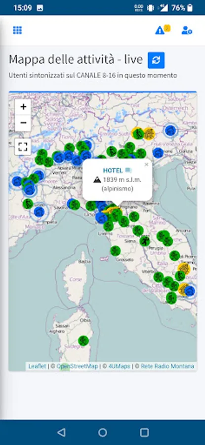 - REFUGE: mountain shelters that join and contribute to the radio monitoring of CHANNEL 8-16 for safety purposes in the mountains, increasing the radio coverage of the RRM, thanks to the dominant positions in which they are located.