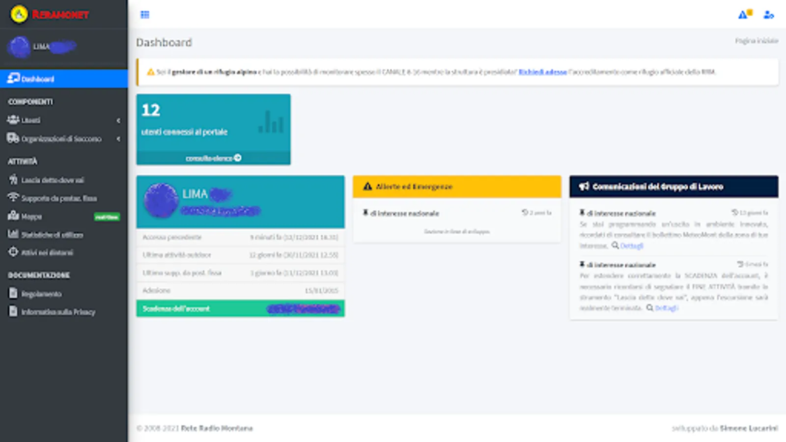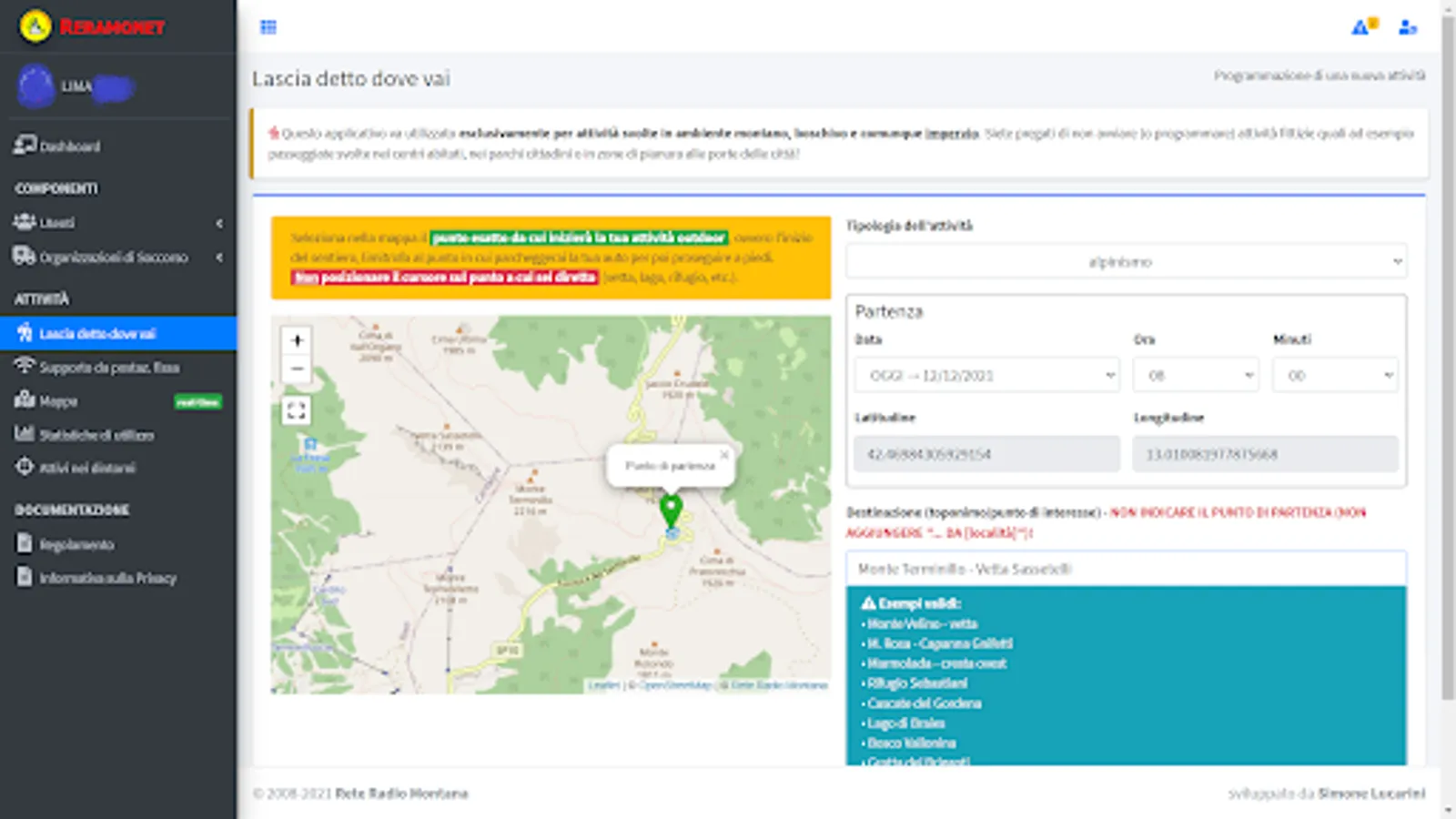 - USERS: mountaineers, hikers, mountain guides, etc. who, accepting the regulation of membership, during their activities monitor the radio frequency of free use called "CHANNEL 8-16" for the exclusive purposes of safety in the mountains. Registration allows you to increase the potential of the radio frequency and provide the Rescue Organizations with useful information in the event of an emergency, for the benefit of the user himself and of the other registered users.