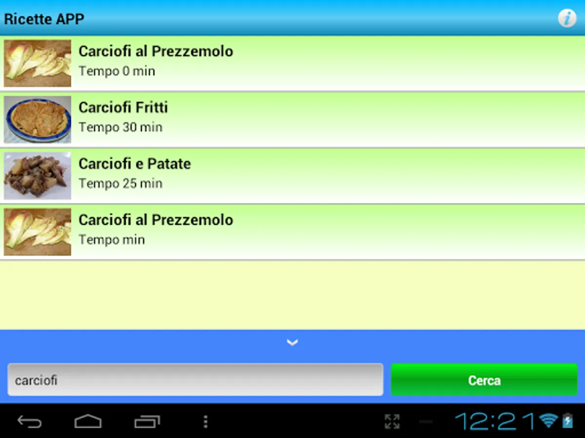 Recipes APP contains a list of recipes, with the times and the works of keyword searches.