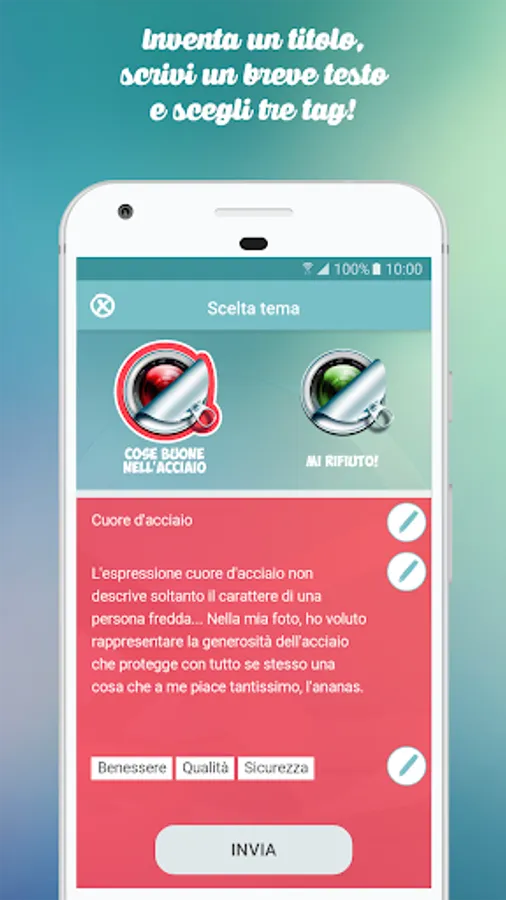Ask the teacher to immediately sign up with your class to get your personal credentials and download the free App RiciClick. Then, visit www.riciclick.it, share with teachers and your fellow interesting content on the recycling of steel packaging. Finally, take the most creative photos and participate in the project!